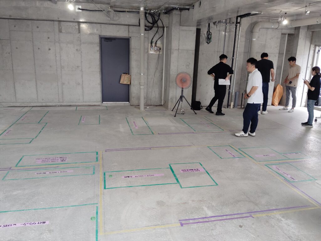 オープン前 2025.08.31 墨出しチェック 墨出しチェックって、ご存知ですか? 先日、院内の墨出しチェックを行いました。これは、設計図に沿って実際の建物の床や壁に位置を示し、診察室や手術室、入院室などの場所を最終確認する大切な工程です!図面の上では分かりづらい導線も、現場で確認することで「ここはもう少し広くしたほうがいい」「器械の搬入はこの動線でスムーズか」など具体的にイメージできます。飼い主さまと動物たちに快適に過ごしていただけるよう、細部まで確認を重ねています🤗 一覧に戻る