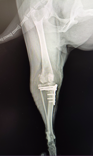 症例 トイプードル 4歳 避妊メス 来院理由 右後肢のびっこ、2、3ヶ月前から症状があり、痛み止めで若干改善するが、破行を繰り返す 身体所見 歩行検査にて右後肢の非負重性歩行 触診にて右後肢の伸展時疼痛、脛骨前方偏位を確認 検査 【血液検査】 ・異常なし 【レントゲン検査】 ・右膝関節内の関節液貯留所見、脛骨前方偏位像確認 治療方針 内科治療では改善に乏しいことから手術を検討 TPLO法を実施 術後体調の変化なし、リハビリと定期検診をしていく予定 実績に戻る 関連の症例を見る 外科 眼球摘出術 外科 犬の肺葉切除(はいようせつじょ)