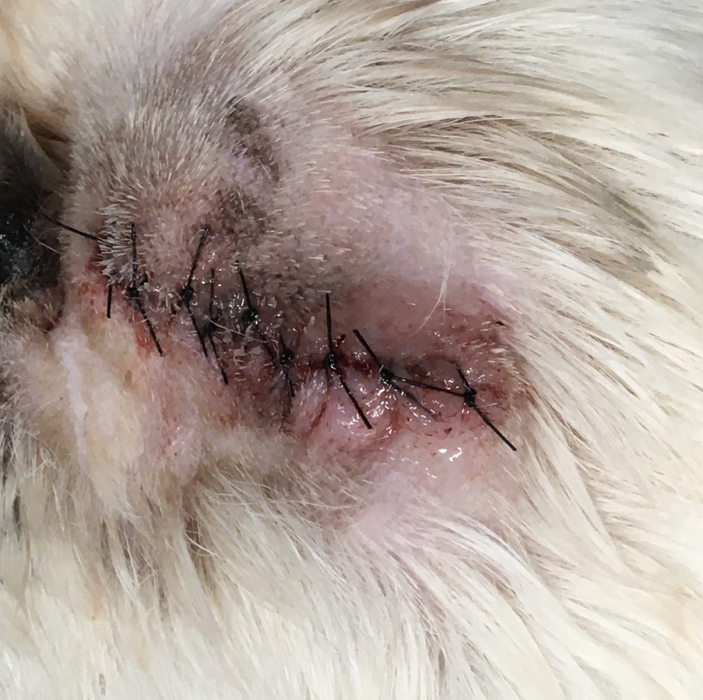 症例 10歳、ペキニーズ 来院理由 目をしょぼつかせて、痛そう、 身体所見 左目の角膜に潰瘍部を確認 スリットランプ検査:左目重度の結膜充血、角膜浮腫、前房蓄膿 フローレス検査:左目角膜中央部に染色陽性 角膜細胞診:炎症細胞、菌を確認 診断 角膜潰瘍 治療と経過 抗生剤点眼、ヒアルロン酸の点眼で治療開始するも1週間後の時点で改善なし、再検査にて穿孔を確認 飼い主様に治療の選択肢を相談したところ、眼球摘出を希望されたため実施 術式:経眼瞼眼球摘出術 経過 翌日退院し、定期検診の予定 実績に戻る 関連の症例を見る 外科 犬の前十字靭帯断裂(TPLO法) 外科 犬の肺葉切除(はいようせつじょ)