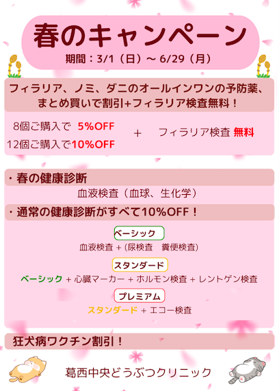 【🌸春の予防キャンペーン|フィラリア検査無料!】